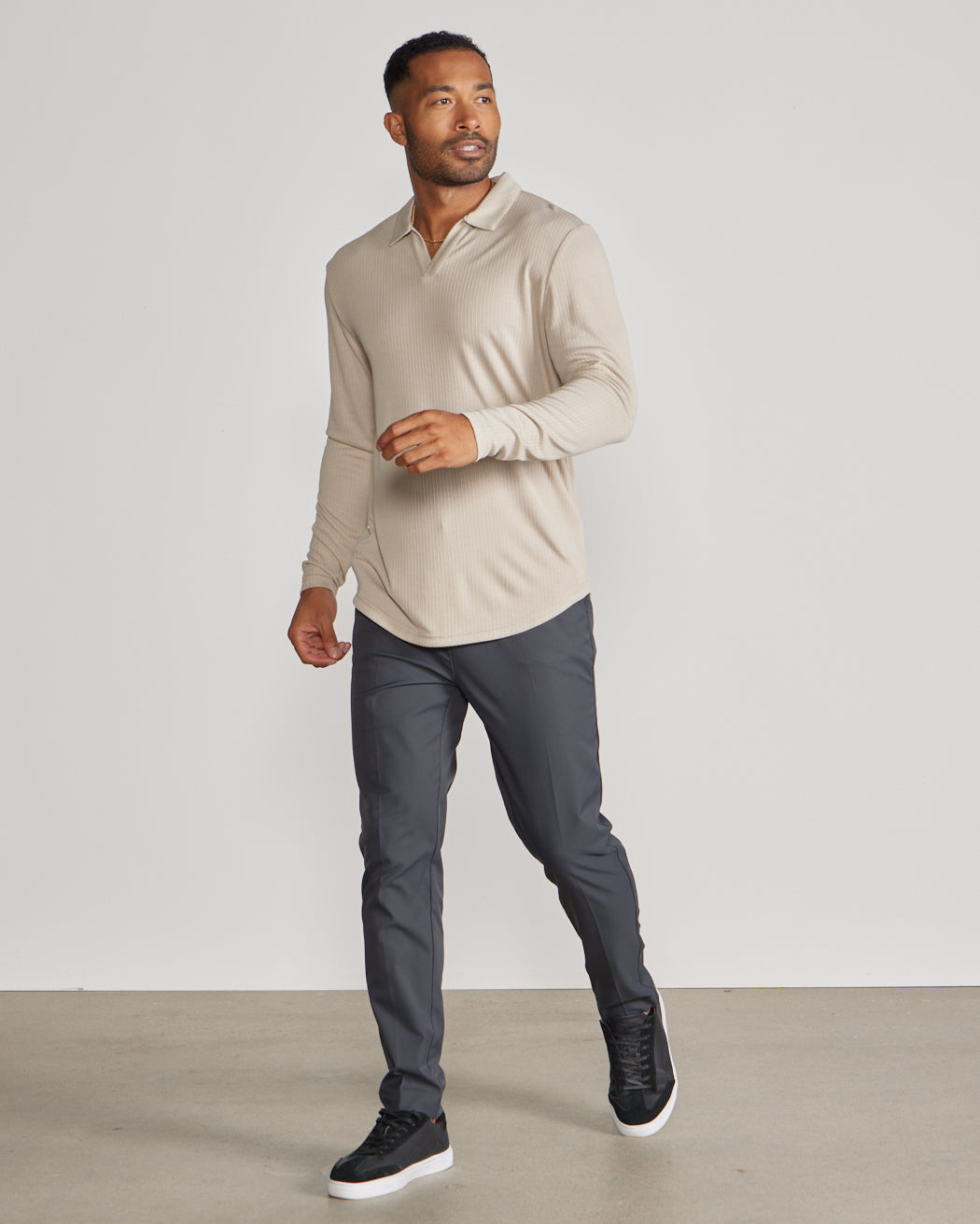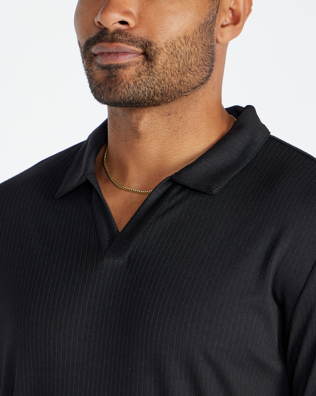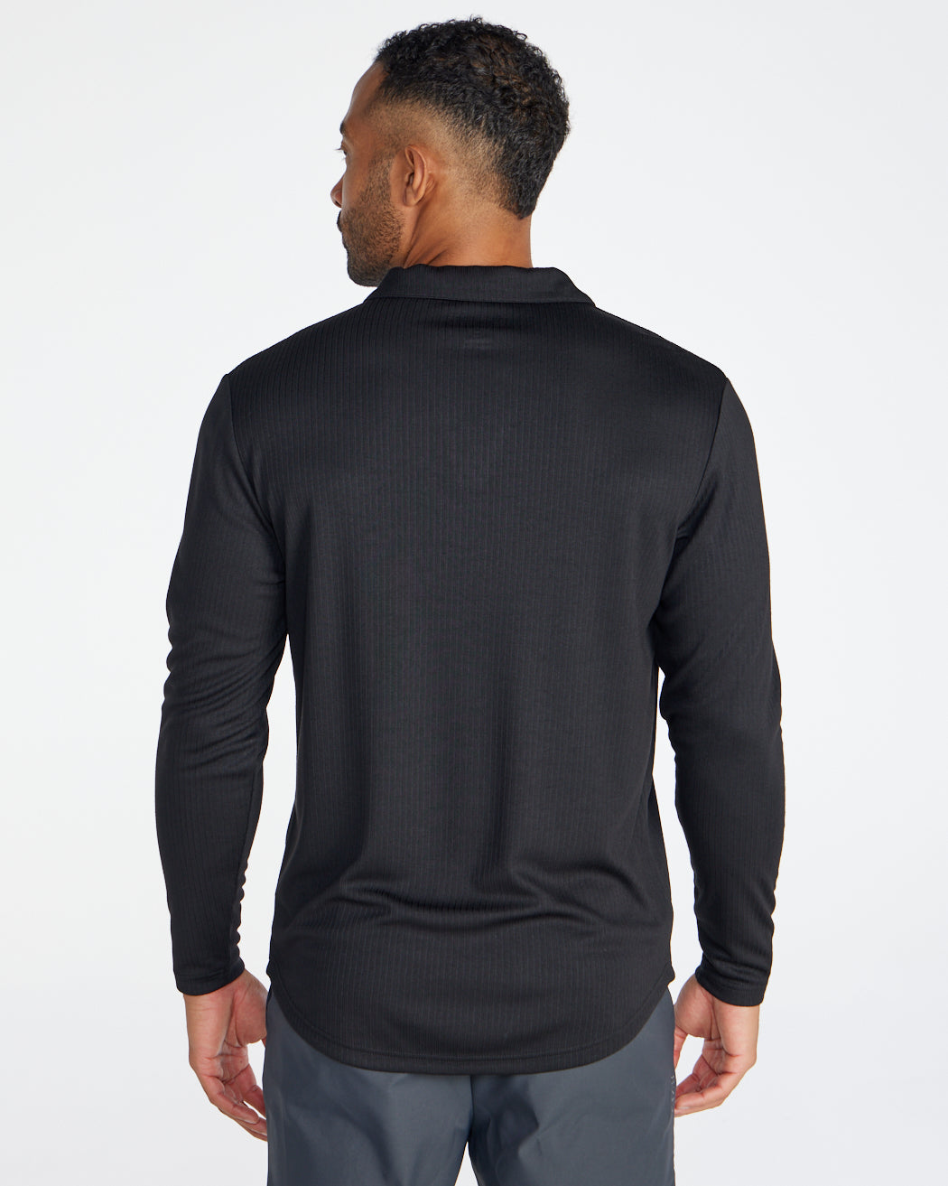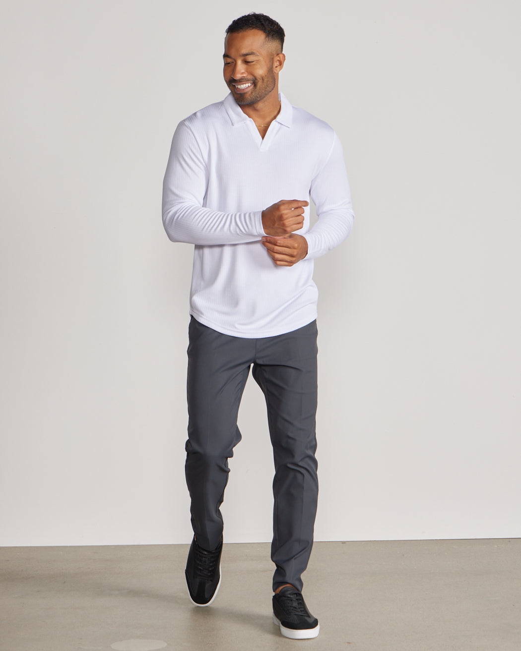 The Ribbed Open V Polo is now offered as a long sleeve. Crafted with a premium finish, embroidered branding, and lightweight stretch, it offers a soft-hand feel for all-day comfort. Ideal for a sharp, stylish look at social events, it ensures you make a lasting impression.