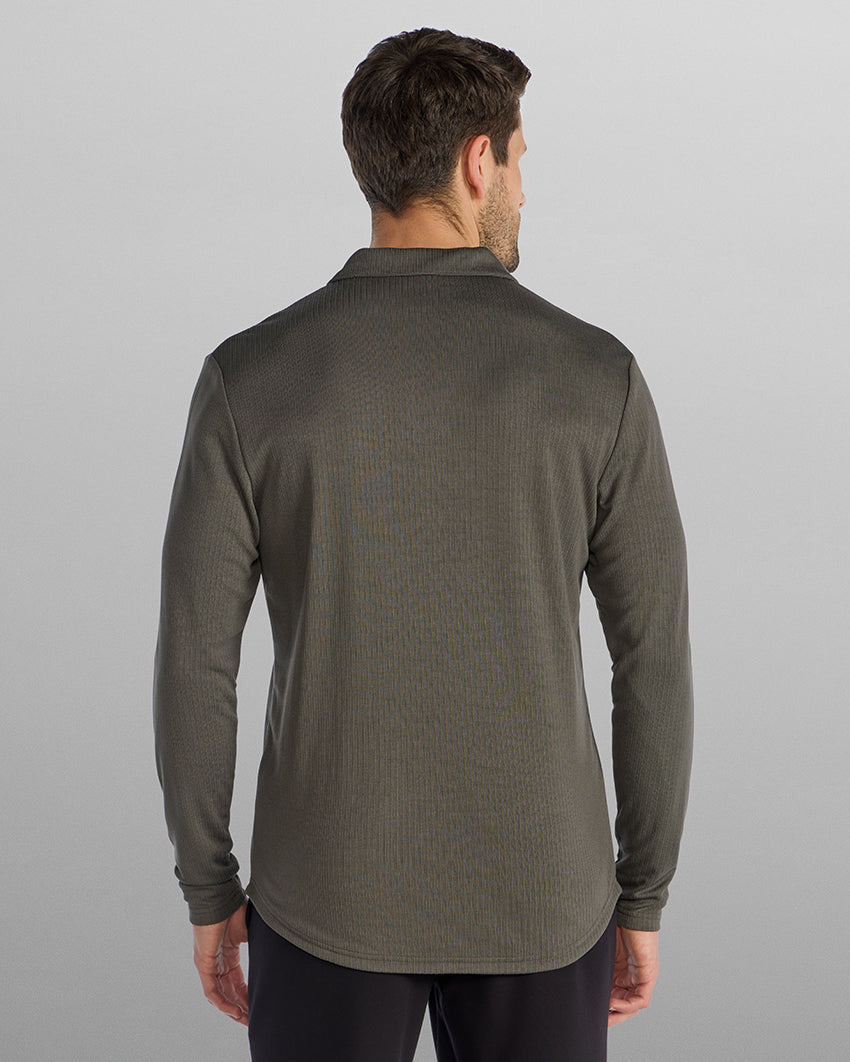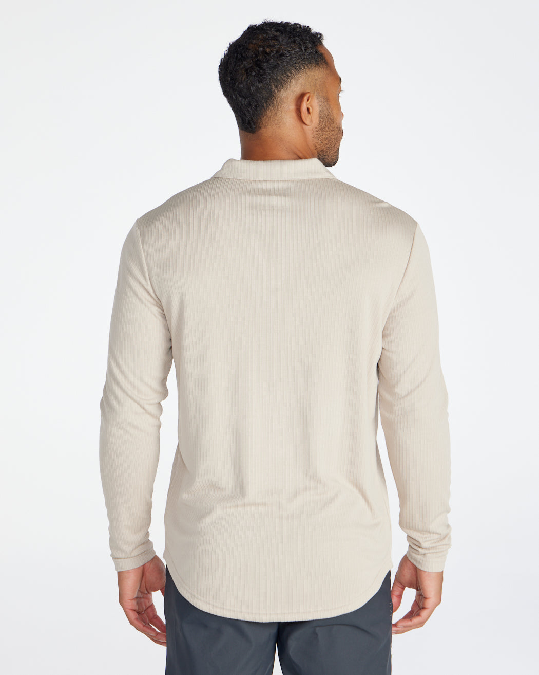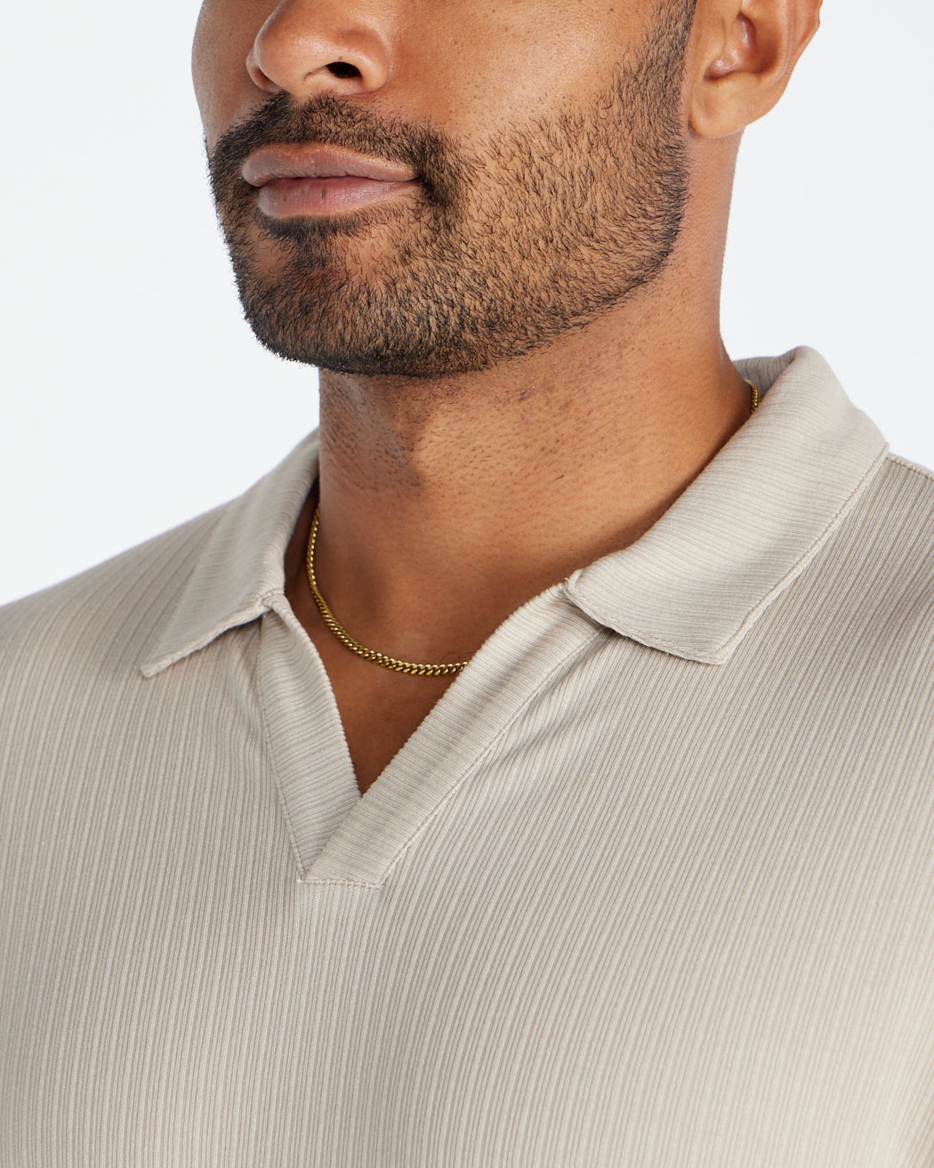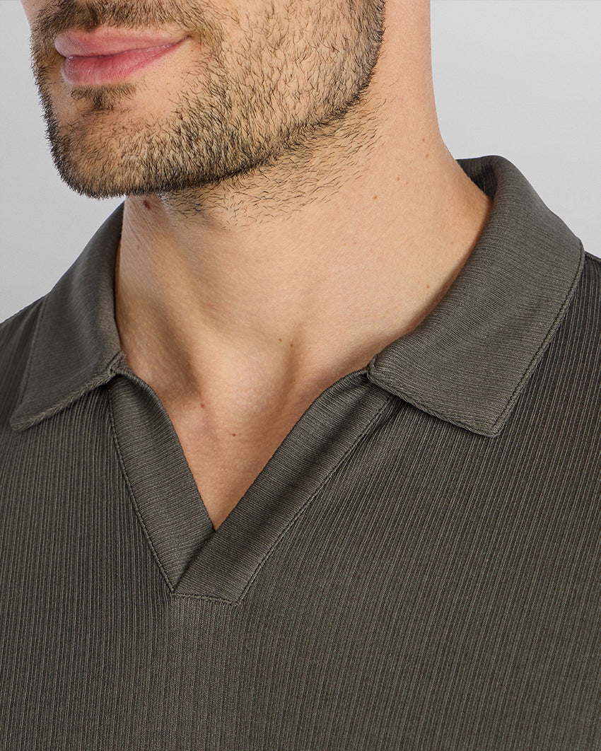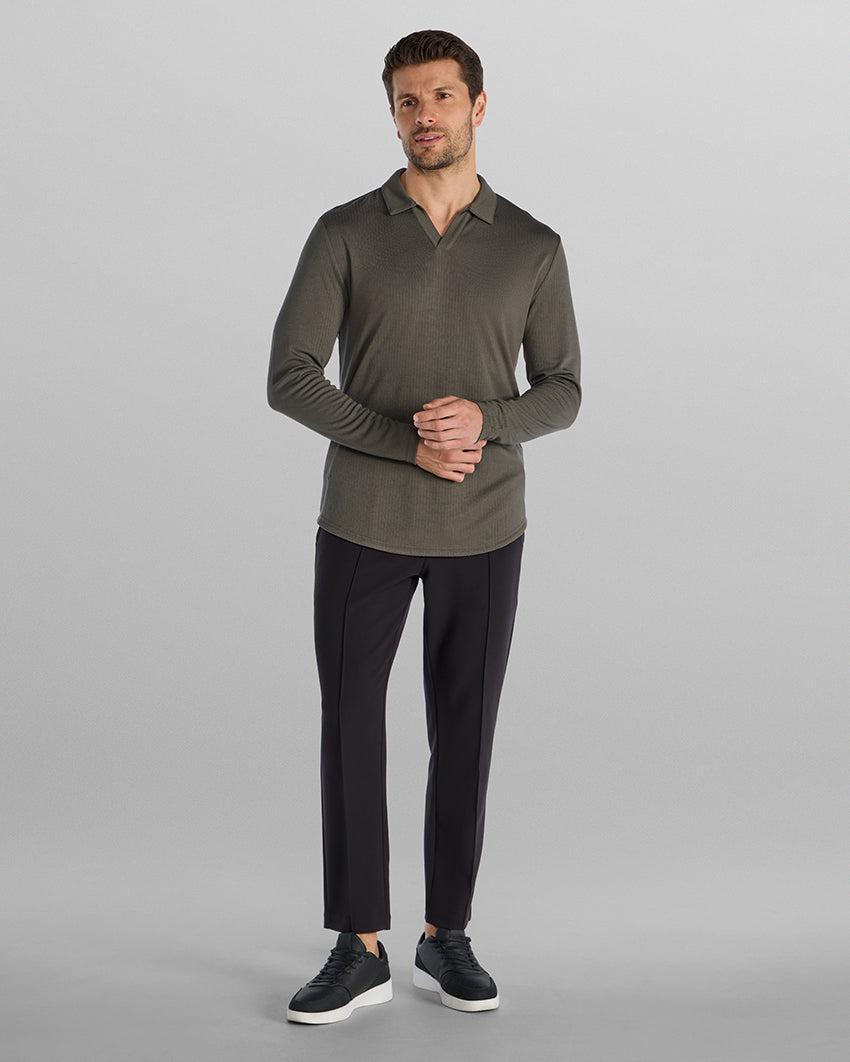 The Ribbed Open V Polo is now offered as a long sleeve. Crafted with a premium finish, embroidered branding, and lightweight stretch, it offers a soft-hand feel for all-day comfort. Ideal for a sharp, stylish look at social events, it ensures you make a lasting impression.