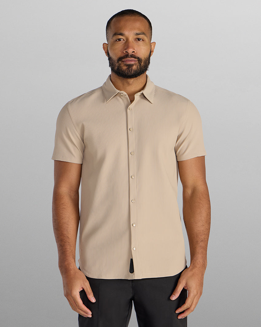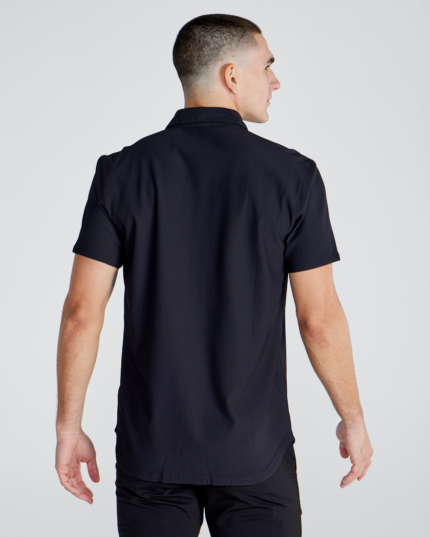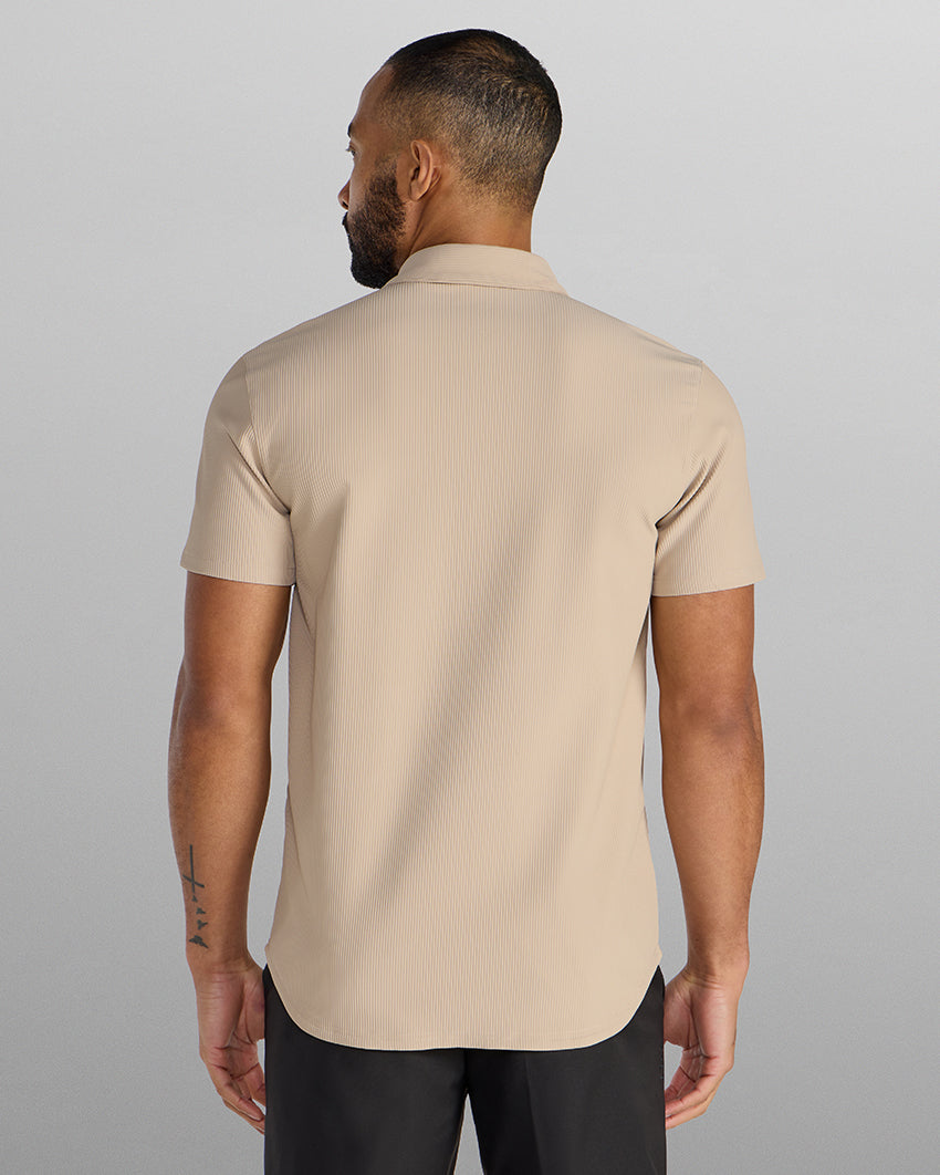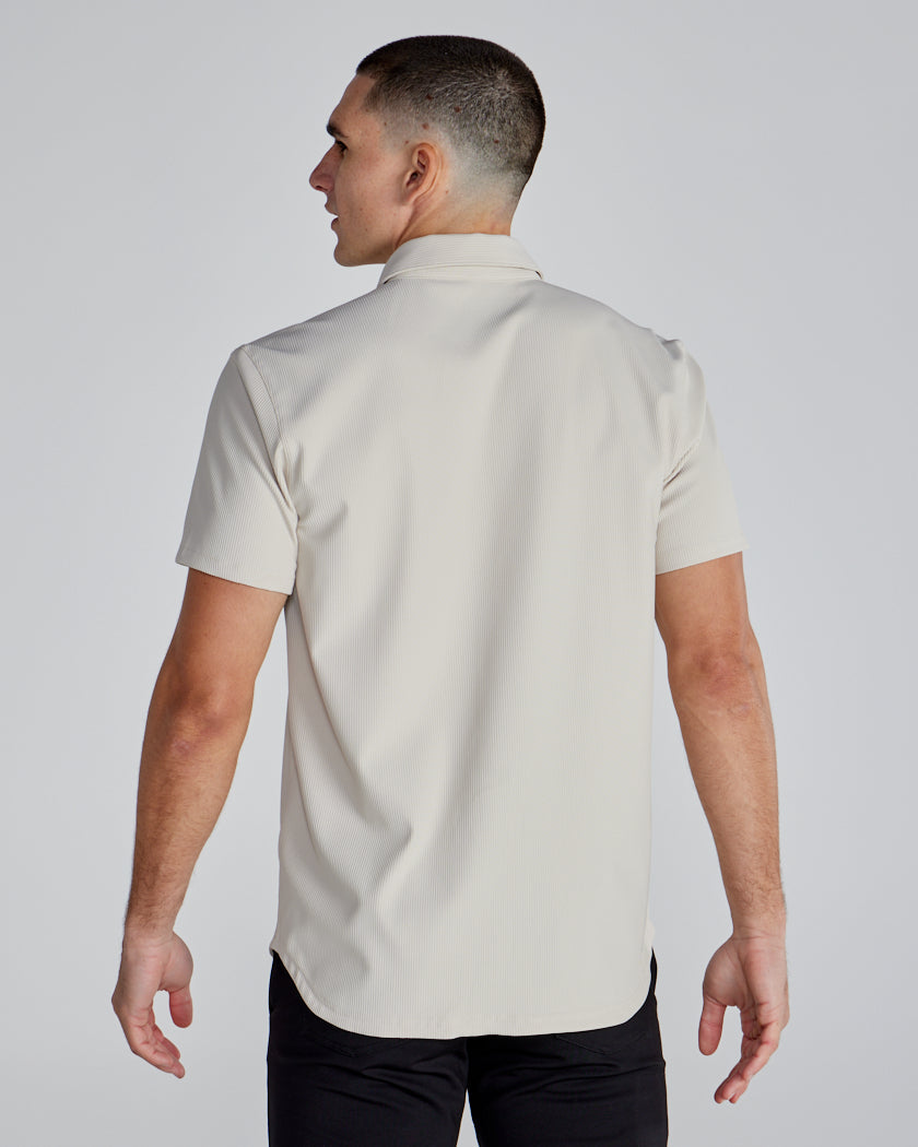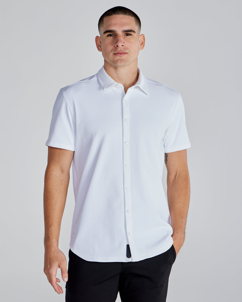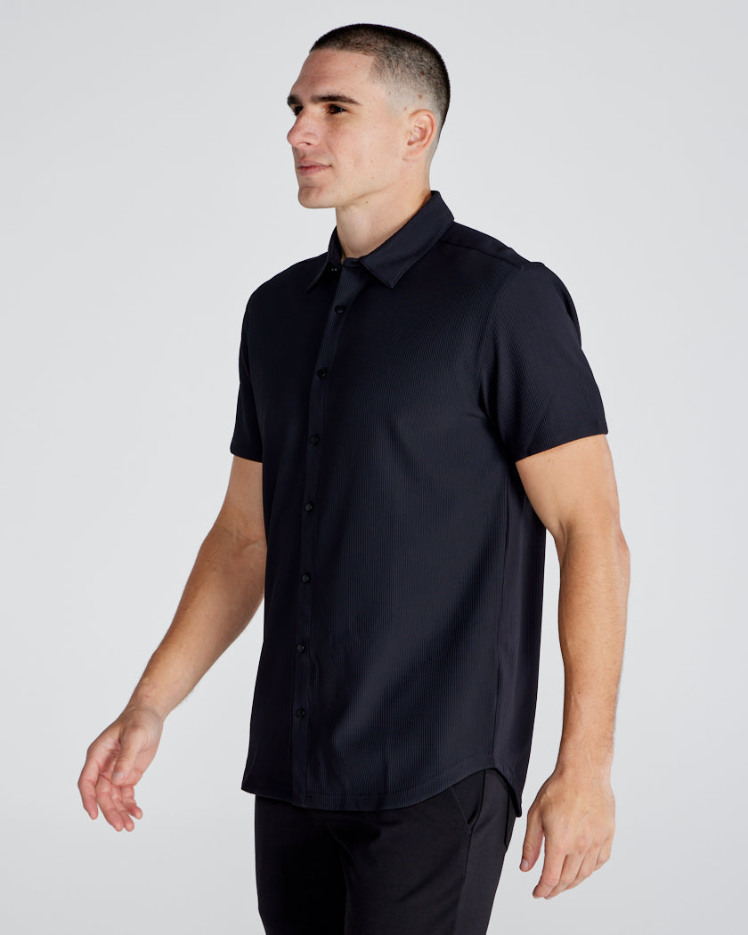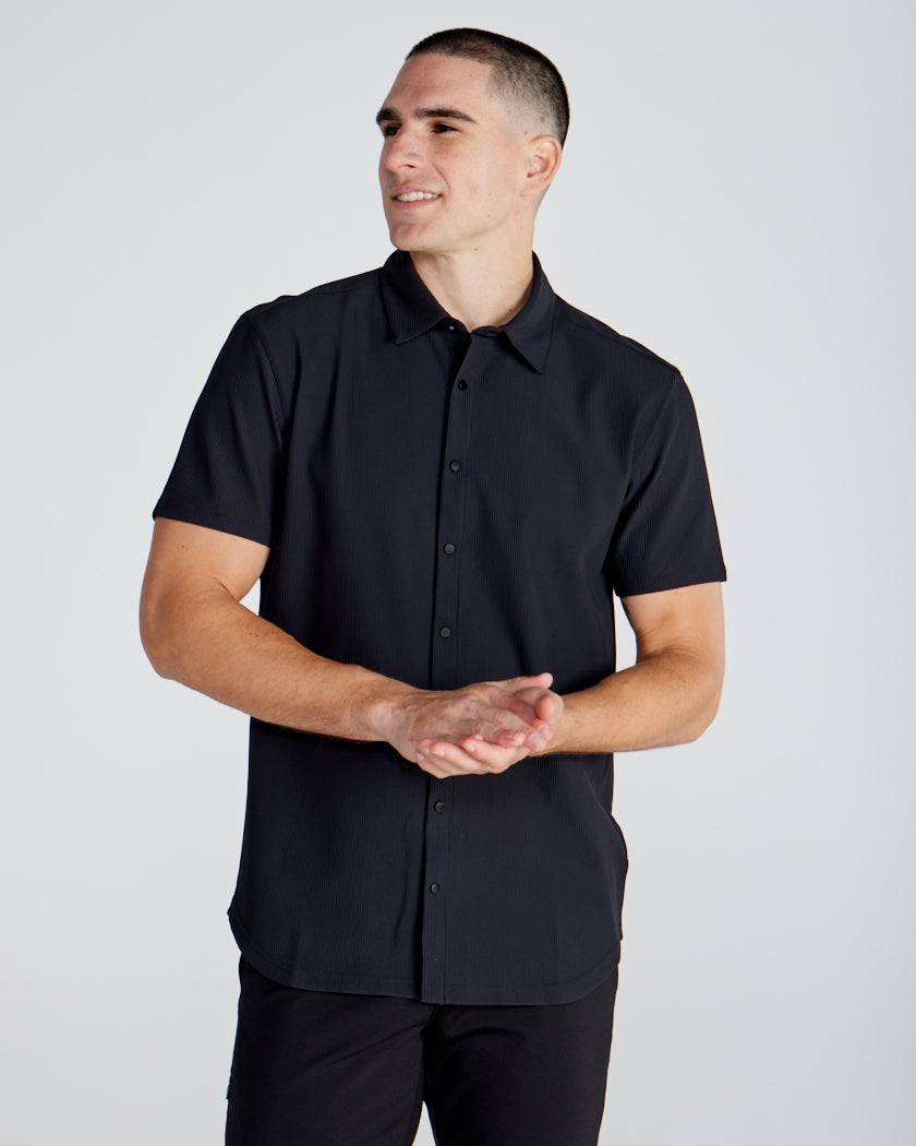 Premium appearance, all-day comfort, and elevated style. The Ribbed+ Short Sleeve Button Down is the perfect transitional top to take you from work to social hour. Our new poly fabric blend gives the garment a sleek, cool-hand feel, while the Ribbed+ construction adds the premium texture and upscale aesthetic you’re looking for in your daily button down.