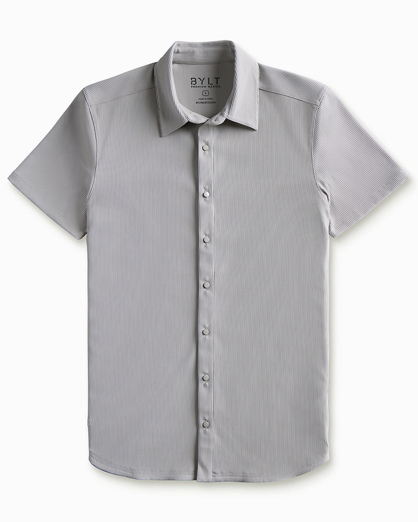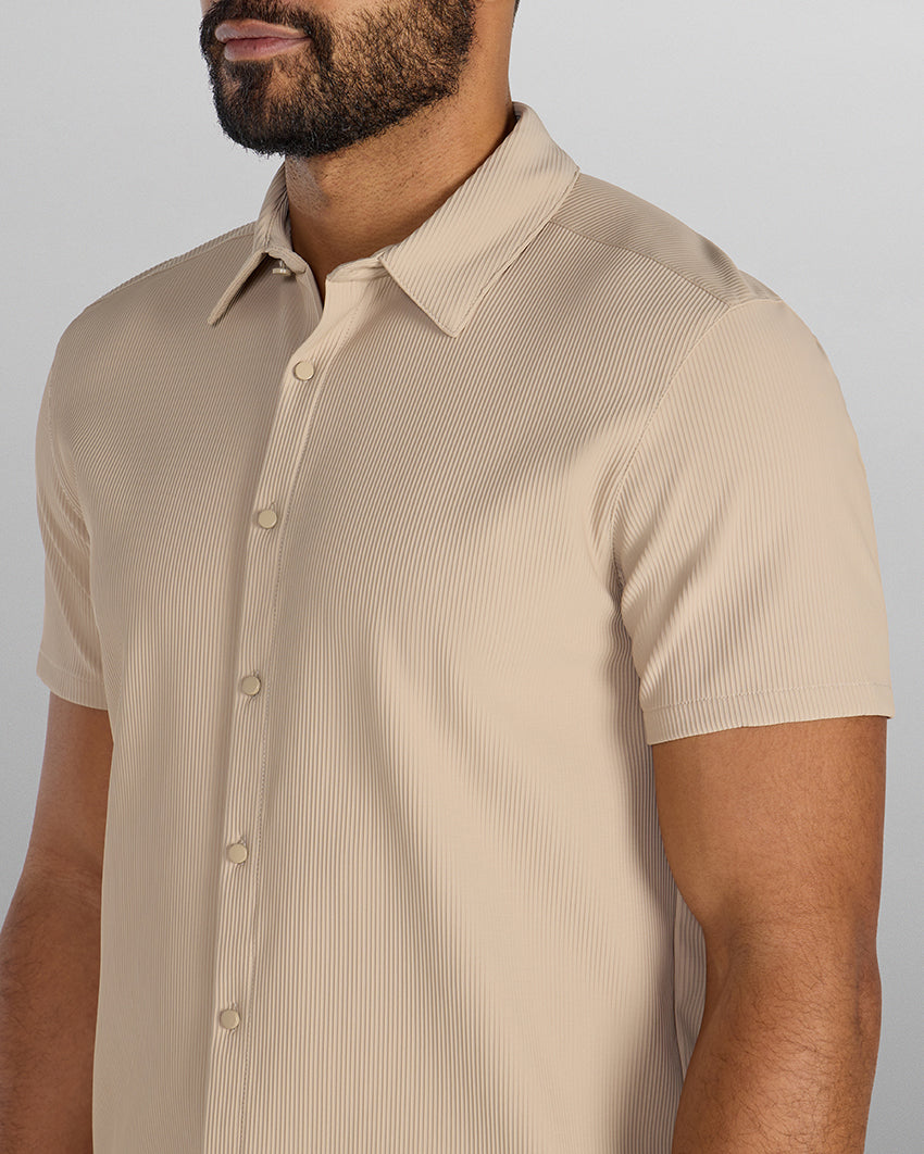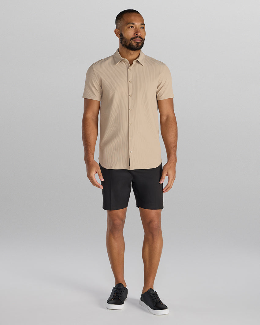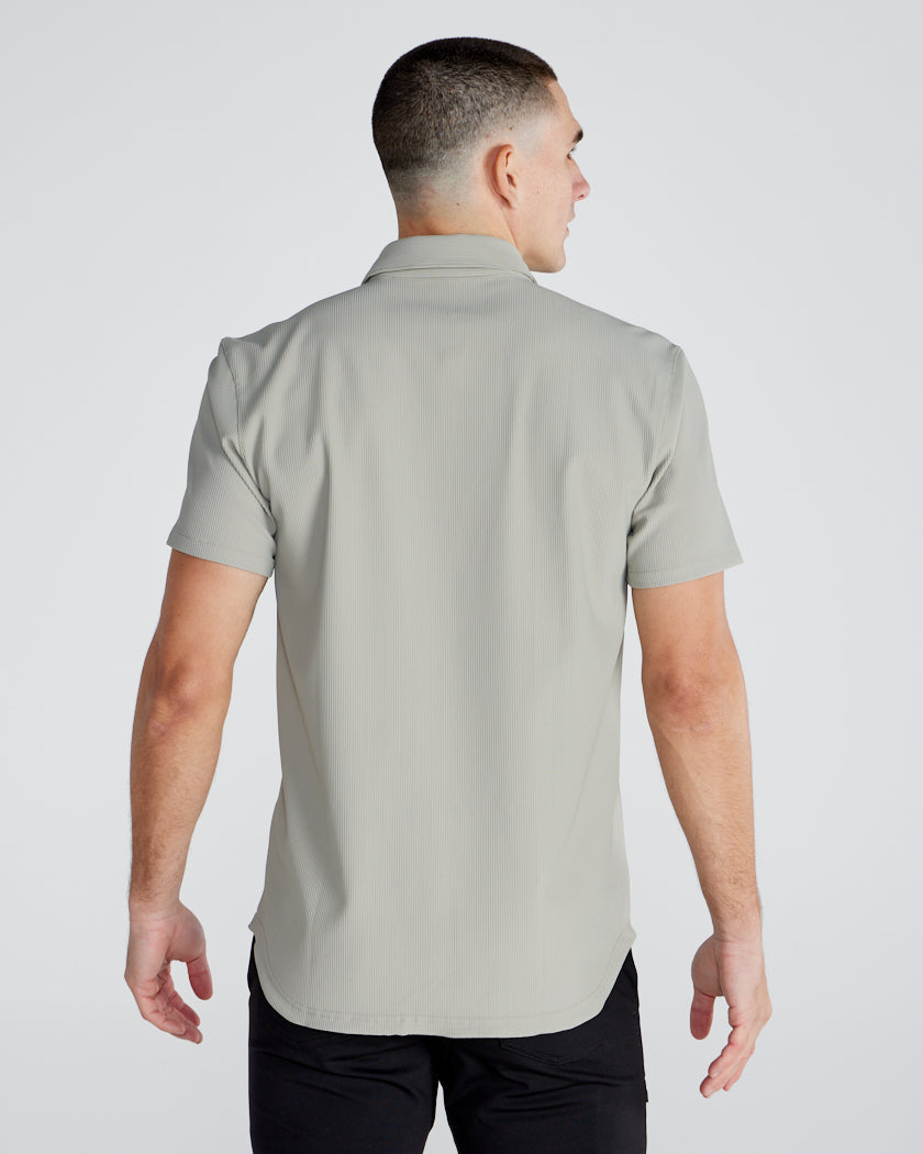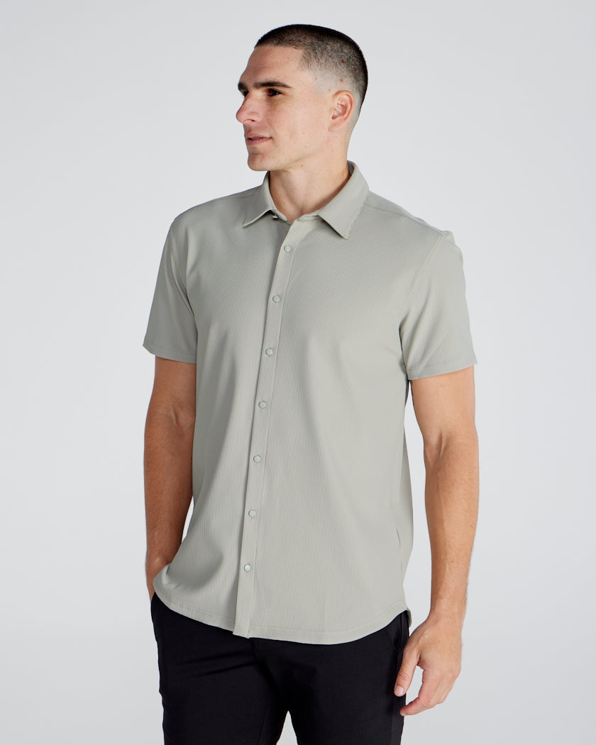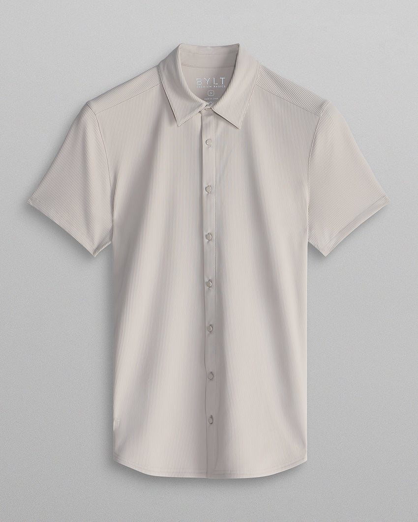 Premium appearance, all-day comfort, and elevated style. The Ribbed+ Short Sleeve Button Down is the perfect transitional top to take you from work to social hour. Our new poly fabric blend gives the garment a sleek, cool-hand feel, while the Ribbed+ construction adds the premium texture and upscale aesthetic you’re looking for in your daily button down.