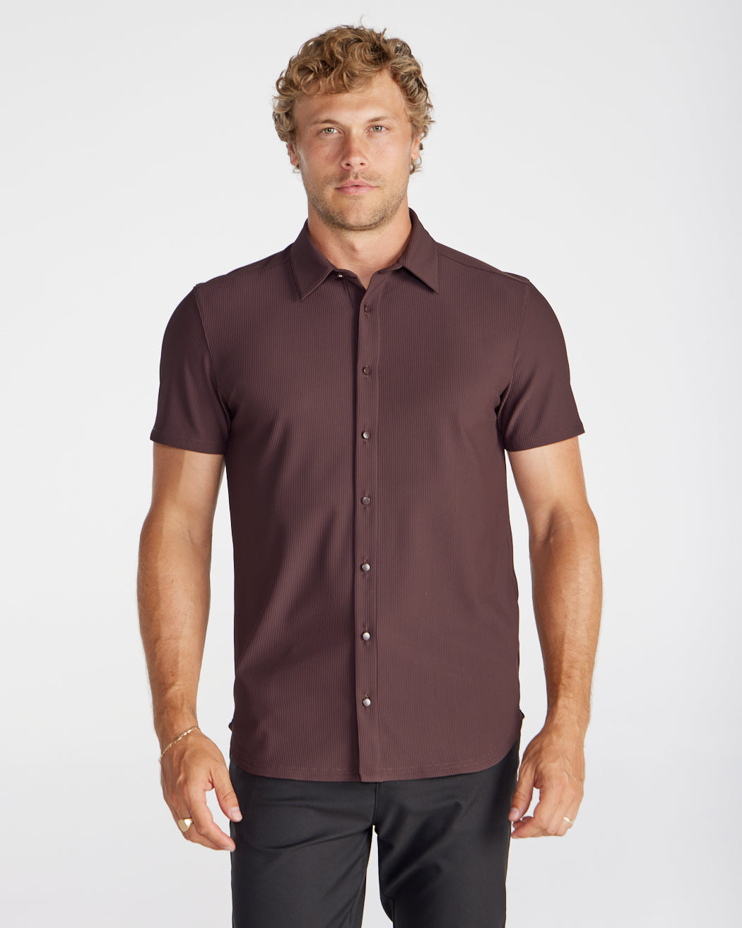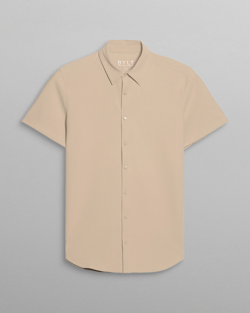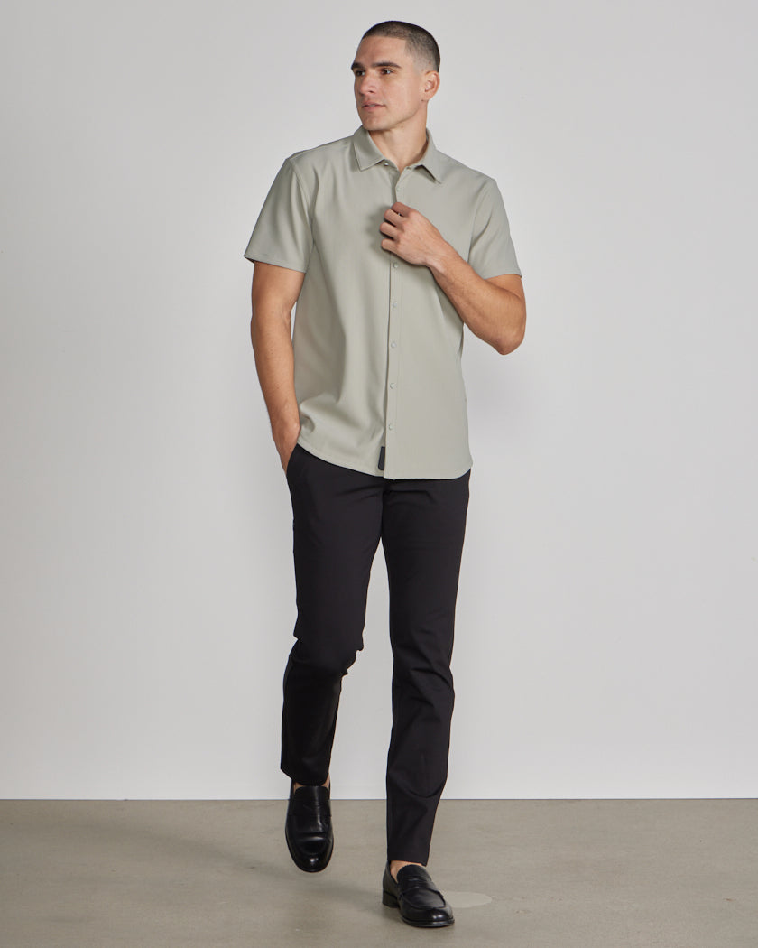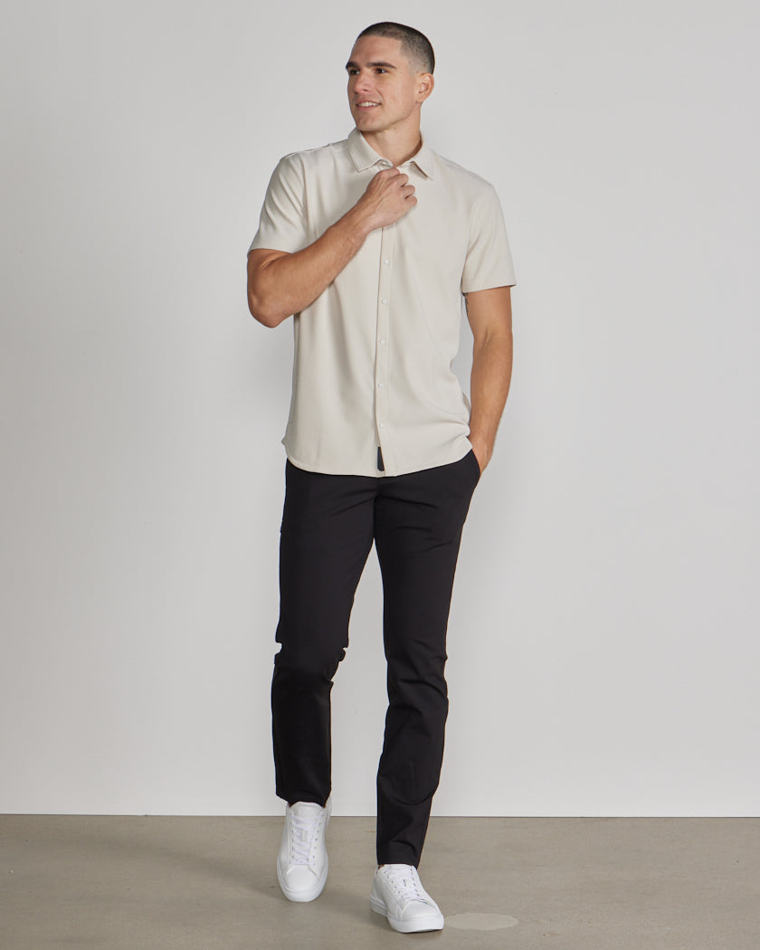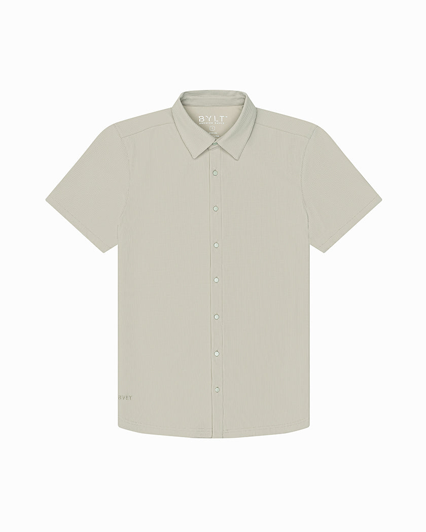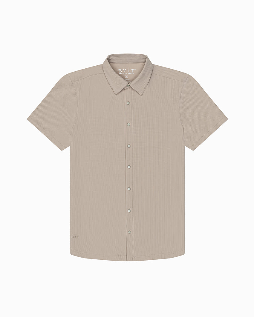 Premium appearance, all-day comfort, and elevated style. The Ribbed+ Short Sleeve Button Down is the perfect transitional top to take you from work to social hour. Our new poly fabric blend gives the garment a sleek, cool-hand feel, while the Ribbed+ construction adds the premium texture and upscale aesthetic you’re looking for in your daily button down.