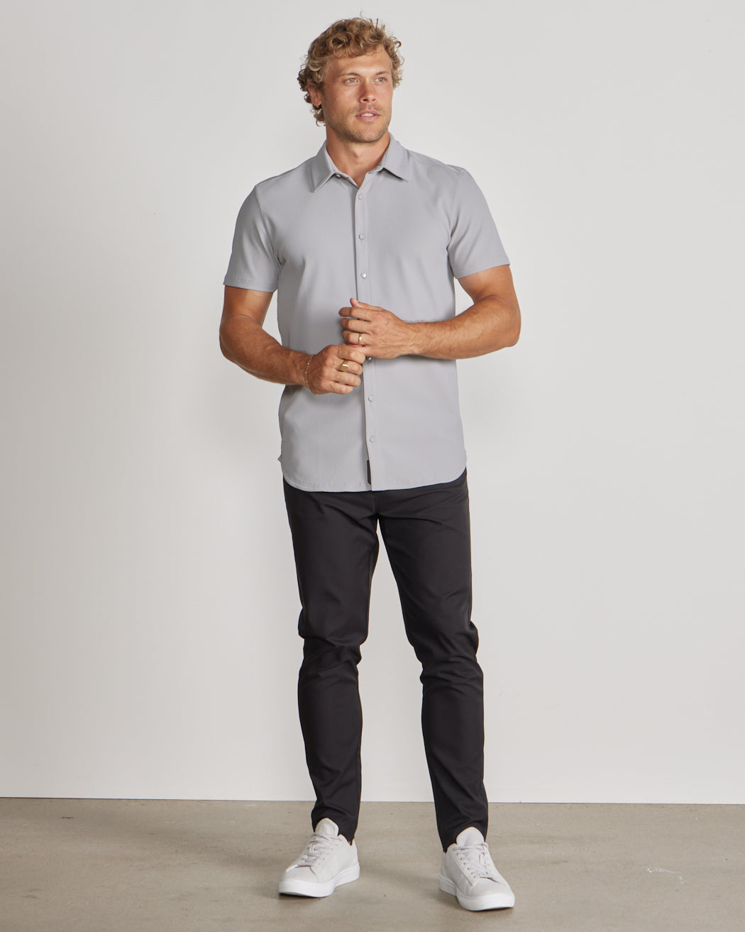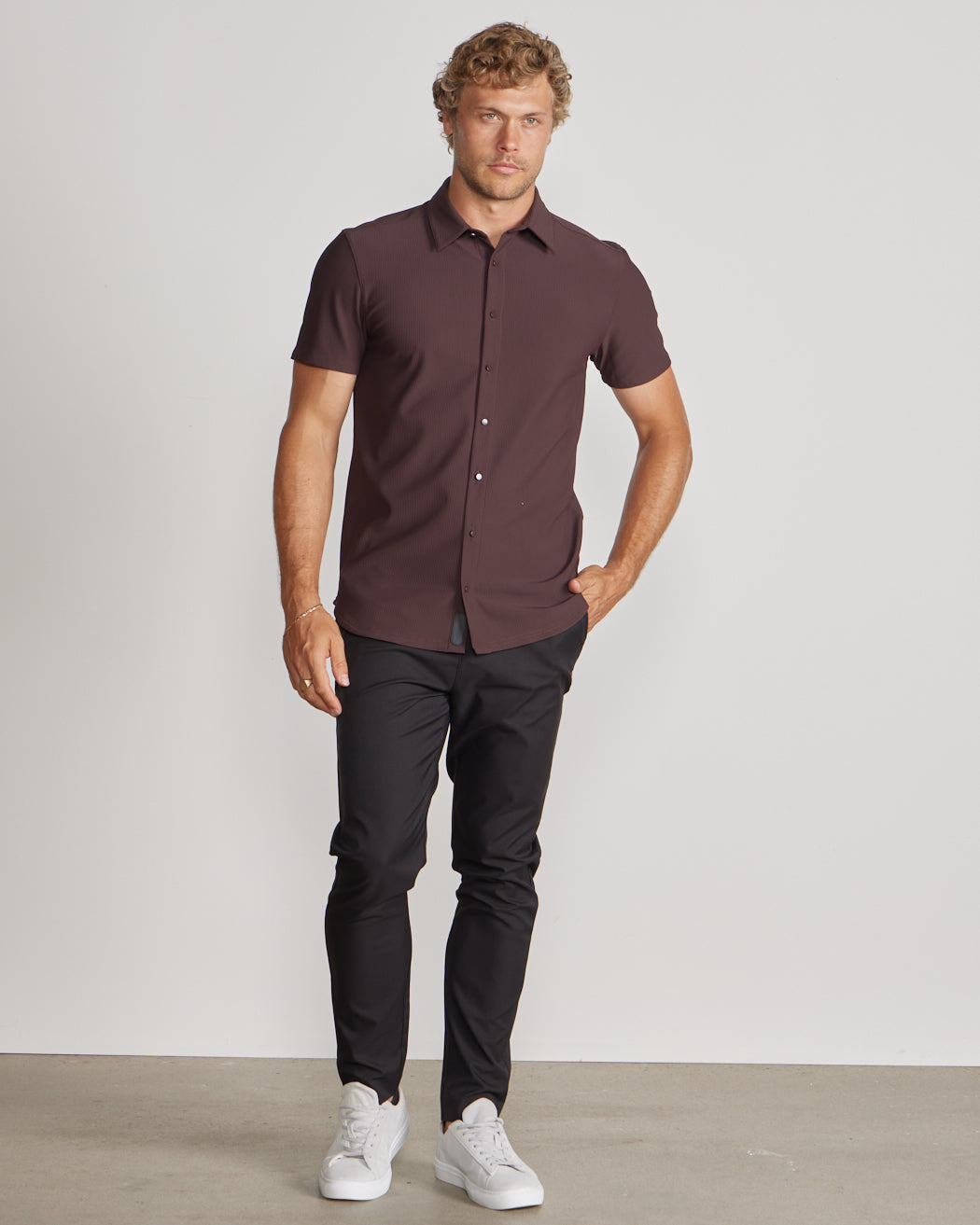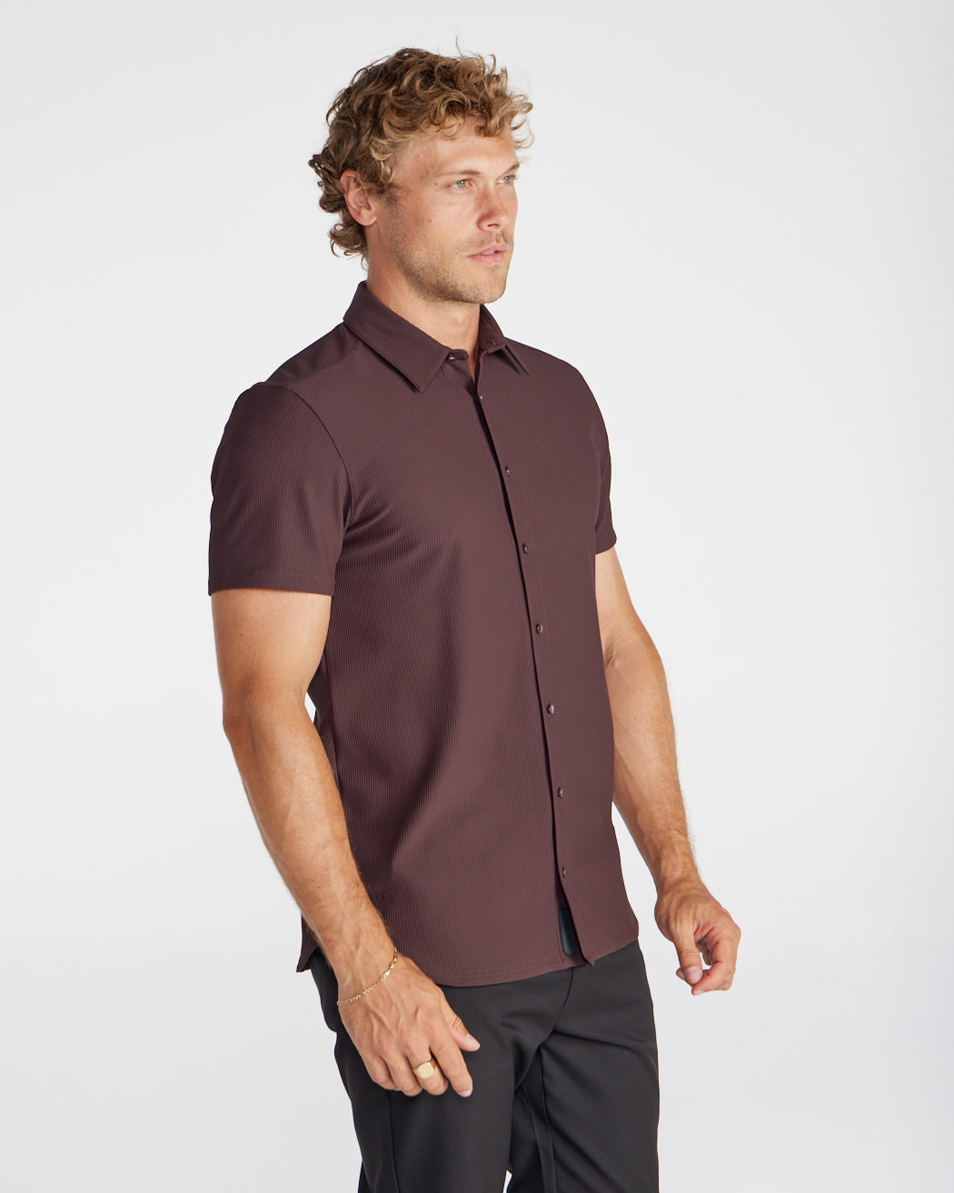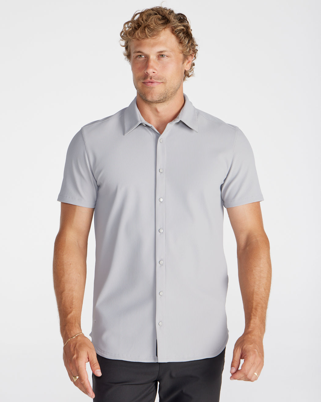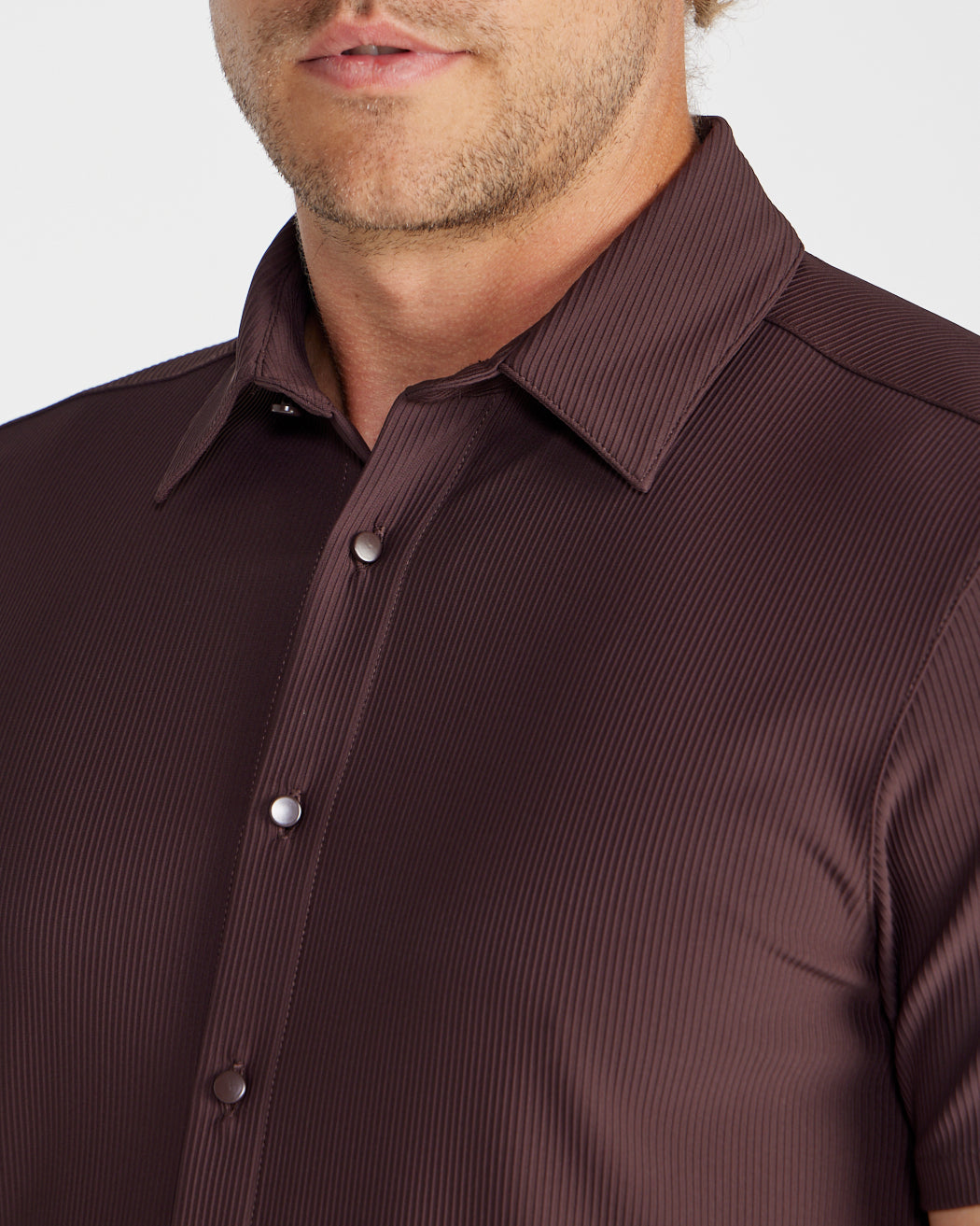 Premium appearance, all-day comfort, and elevated style. The Ribbed+ Short Sleeve Button Down is the perfect transitional top to take you from work to social hour. Our new poly fabric blend gives the garment a sleek, cool-hand feel, while the Ribbed+ construction adds the premium texture and upscale aesthetic you’re looking for in your daily button down.