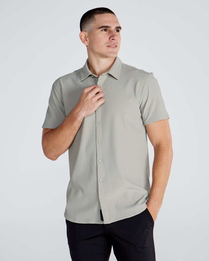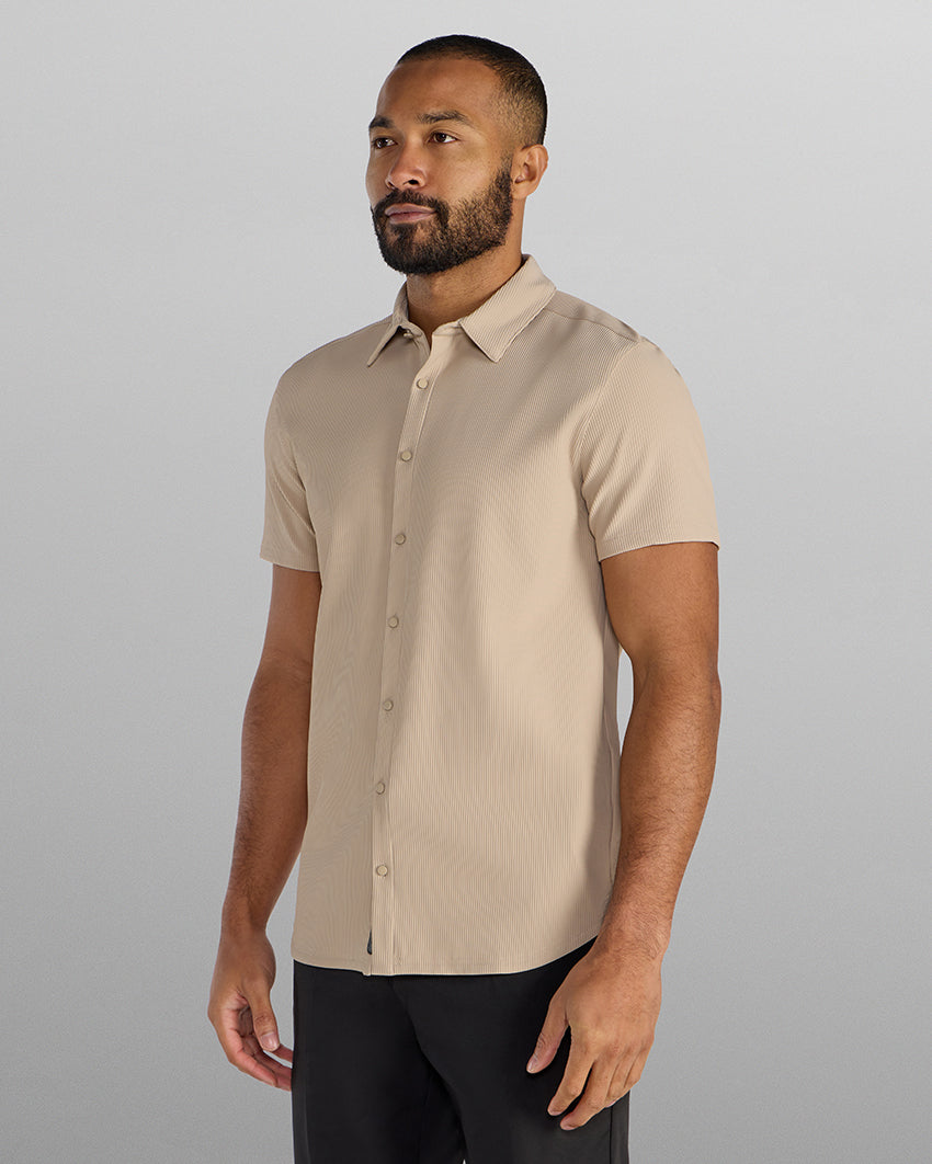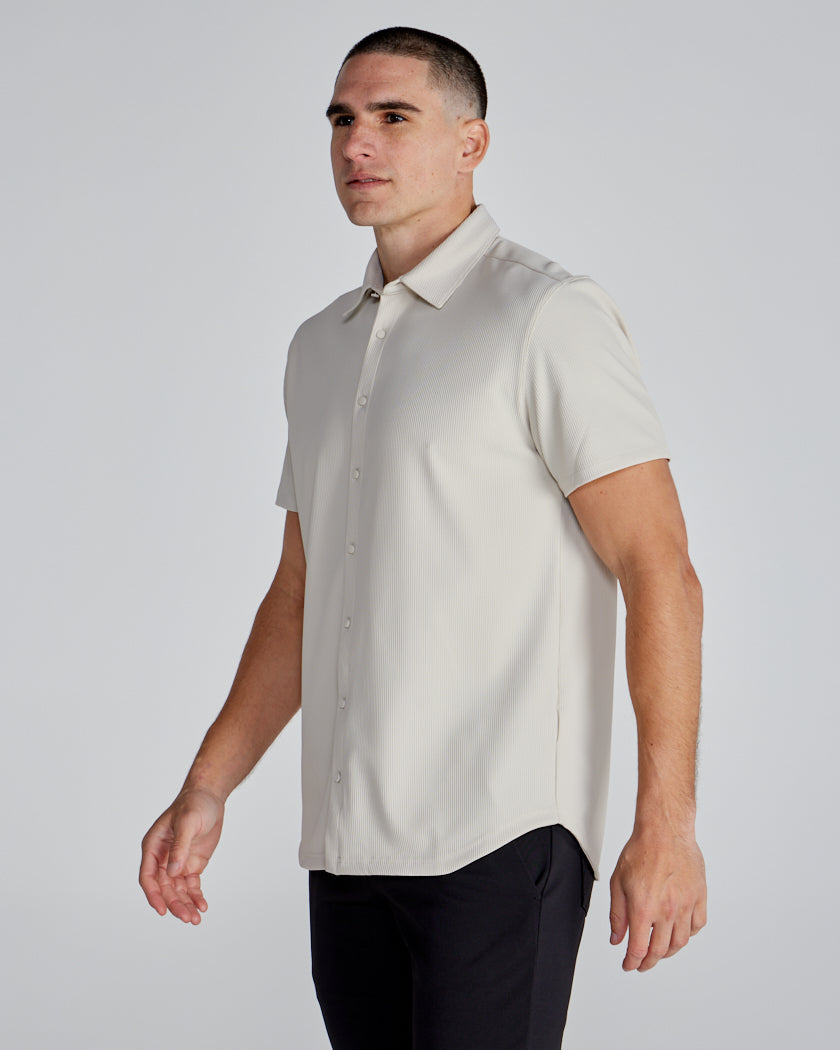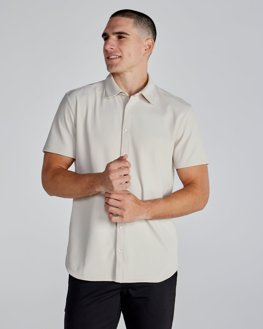 Ribbed+ Short Sleeve Button Down