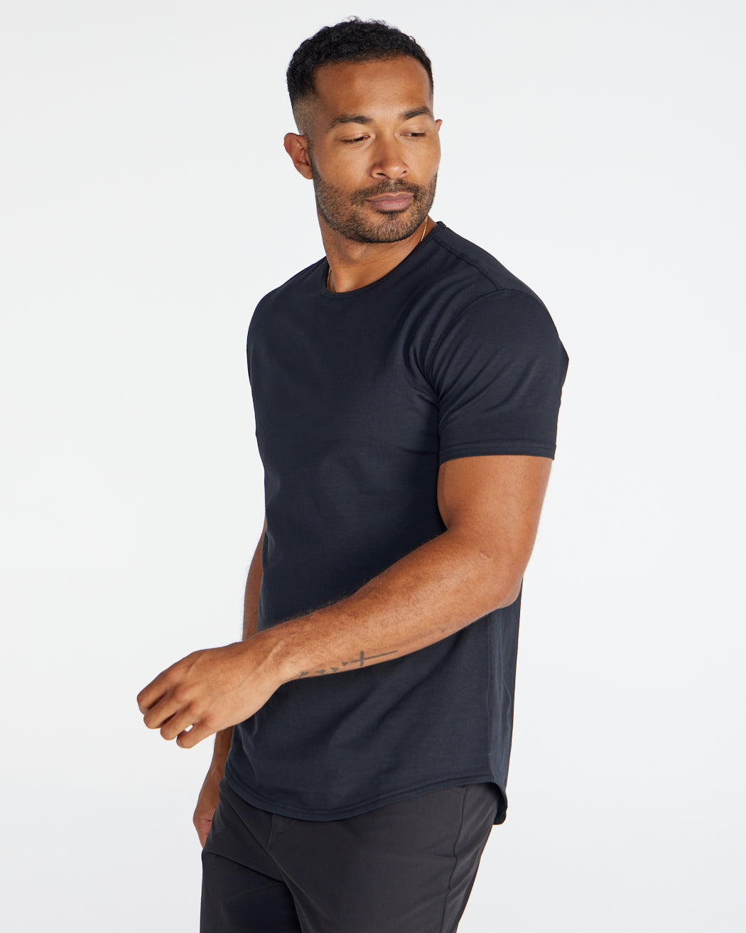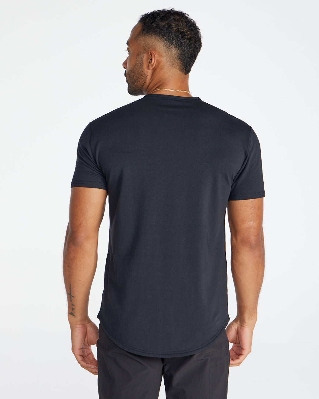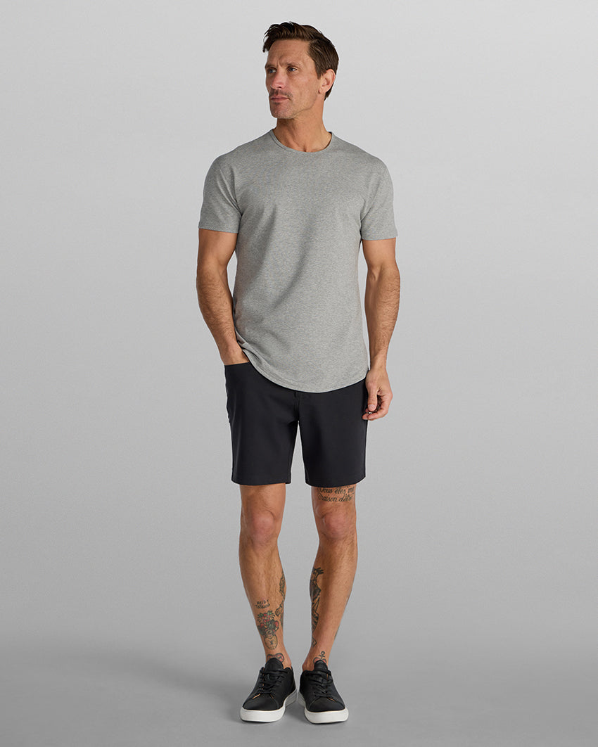 Our #1 best seller, the Drop-Cut LUX, now available in a shorter hem. Crafted from our LUX fabric, this style features a structured drape, drop-cut hem, 4-way stretch, and wrinkle-resistance. Seamlessly transition from office hours to nights out in style. Finding your favorite tee just got easier!